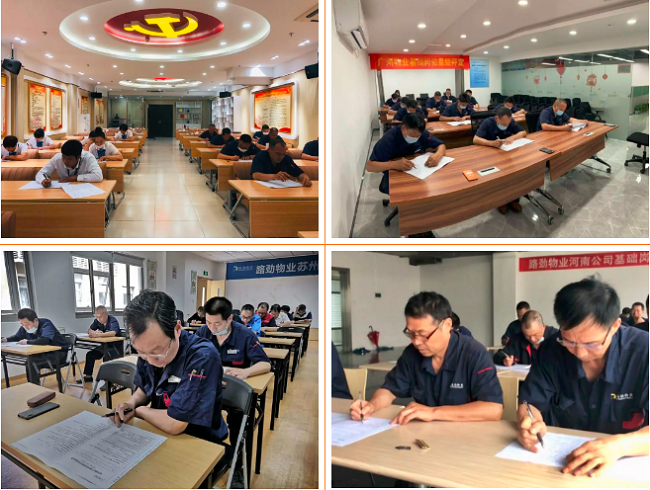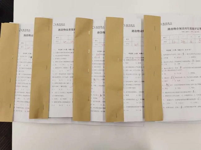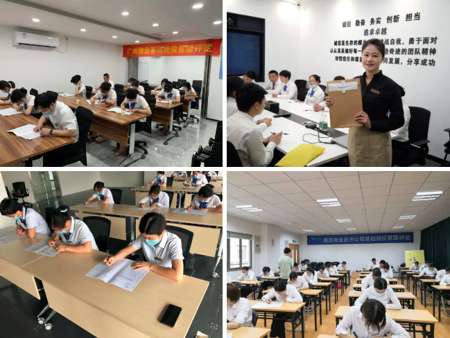 星级评定第一轮为笔试环节,考核内容包括岗位应知应会知识、物业基础服务标准、物业管理相关法律法规等,主要考查员工对物业管理专业知识的掌握。