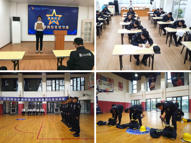 此次秩序、环境条线星级评定也将以笔试+实操的形式展开,从多方面对员工服务水平进行综合考评。秩序实操考核内容除了有基础岗位技能展示外,也将有消防服穿戴、体能测试、军姿队列等精彩展示,届时敬请期待。