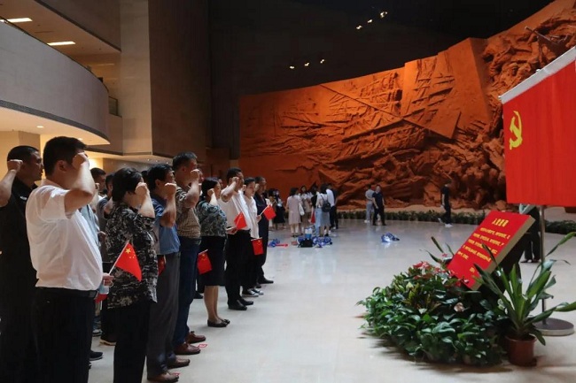 在渡江战役纪念馆及安徽名人馆,一幅幅再现当年革命烽火的图片,一件件饱经风霜的文物,让大家切实感受了革命先辈们的光辉奋斗事迹;在重温入党宣誓活动中,大家铿锵有力的誓词,高高举起的拳头,是“不忘初心、牢记使命”的庄严承诺,是实现“百强物业,一流支部”的坚定决心和不竭动力。
