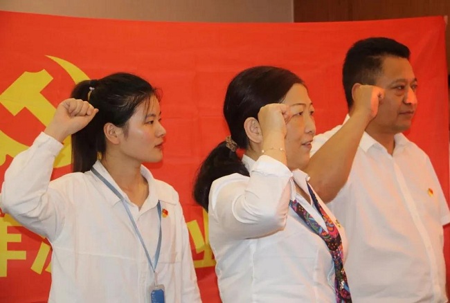 “我志愿加入中国共产党,拥护党的纲领,遵守党的章程……”大会的第一个议题是讨论预备党员戴帮勇、孙丽丽两位同志的转正事宜,采取无记名投票方式进行表决,最终全体支部党员一致通过了两位同志如期转正的申请。