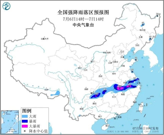 7610时,中央气象台继续发布暴雨黄色预警,预计7614时至714时,安徽南部、湖北东部、江西北部、贵州东北部、湖南西北部等地部分地区有大暴雨。为了应对强降雨影响,中国气象局5日将重大气象灾害(暴雨)四级应急响应提升为三级,多地防汛应急响应升级,防汛抗洪形势严峻。