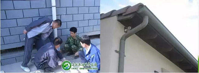 对屋面的雨水落水口、落水管进行检查,清理屋面的杂物,确保雨水落水口无堵塞,管线畅通。对于管线开裂、脱落、渗水等,及时更换或修复。