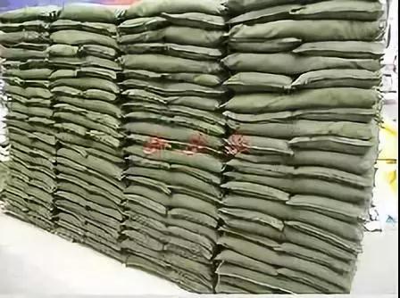 普通沙袋使用时应按堆叠错位的方式进行码放,依次一个压着一个的放置,码放高度如超过50CM,应在其堵水下方增设45度角的围堵坝,以加强堵坝的稳固性;新型膨胀式沙袋码放时,应层叠码放,尽量靠近边缘,码放高度应占孔洞高度的四分之三左右。