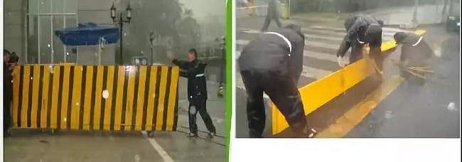 超强台风天鸽登陆时,暴雨大风一齐袭来,又恰逢天文大潮,海平面高,于是发生了严重的海水倒灌。当时我们的项目金域蓝湾距海差不多100米,发现险情后,为了第一时间保护业主的车辆安全,我们迅速来到车库的出入口放下了防洪闸,整个过程不到一分钟。另外我们还在防洪闸前面堆上沙袋,加固防洪闸,有效防止了倒灌海水进入车库。虽然过程很简单,但能够迅速到位,与防洪闸的日常设置检修以及日常演练密不可分。防洪闸就设置在车库出入口,有需要随时能到位。所以,一个简单的动作,在关键时刻真的能发挥大作用
