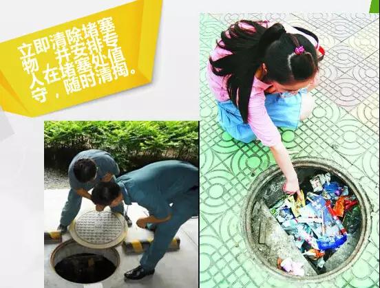 1、检查低洼积水处的雨污水井及排水管线,确保排水畅通;