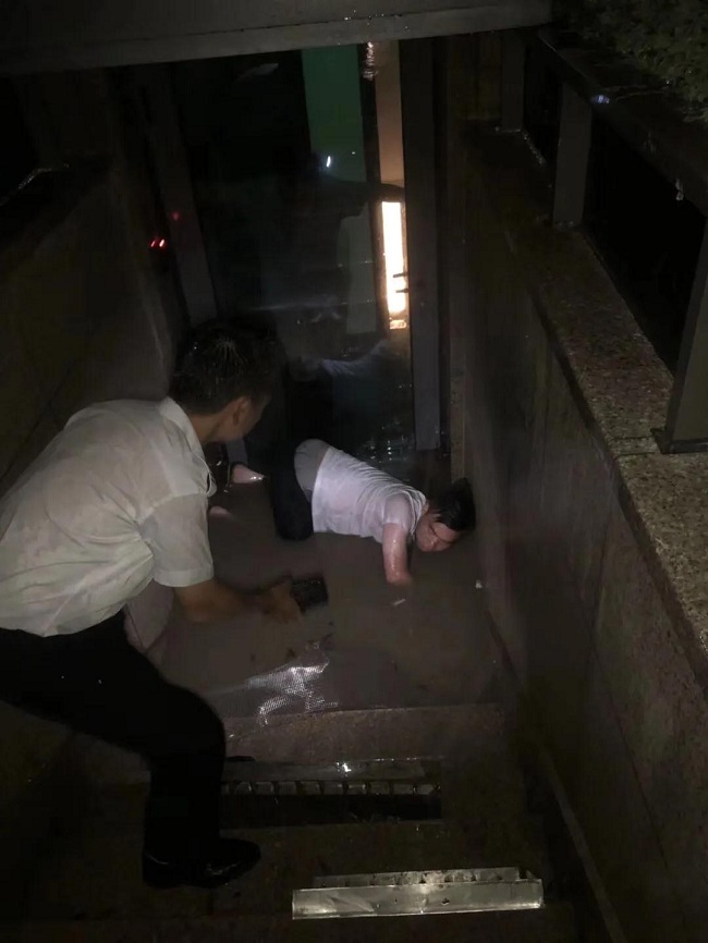 6月27日下午4点左右,天刚刚下过雨还有点闷热,紫金府园区,行人匆匆,突然,一个穿着红裙子的阿姨摔倒在了路上,阿姨双眼紧闭,意识模糊不清。