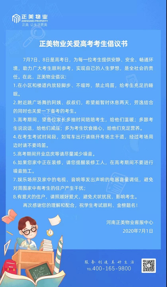 为助力高考,正美物业开展静音护航高考行动、