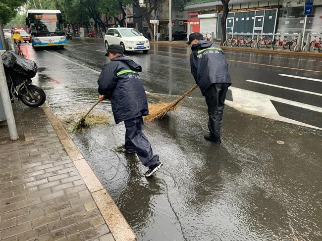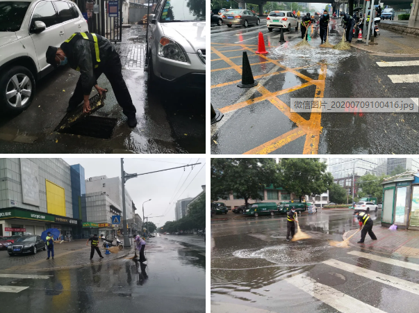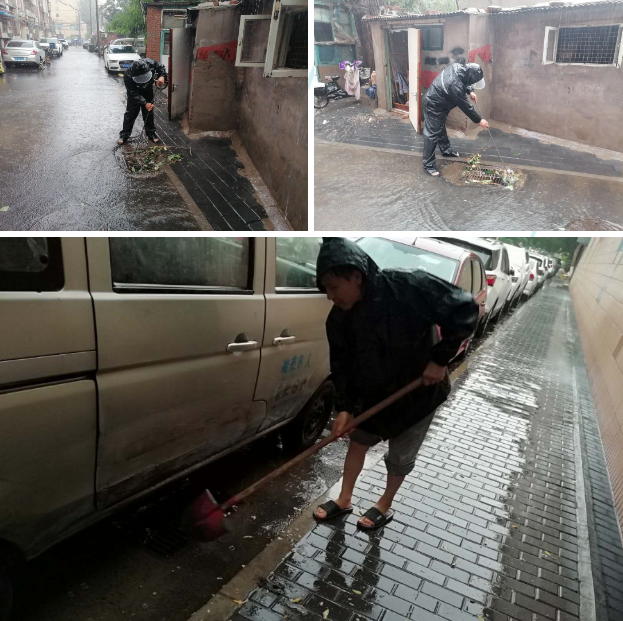早上6:00,国诚物业处月坛北区街巷物业项目部出动15名工作人员,对辖区内积水处进行清扫,巡视检查辖区内雨篦子等排水设施。