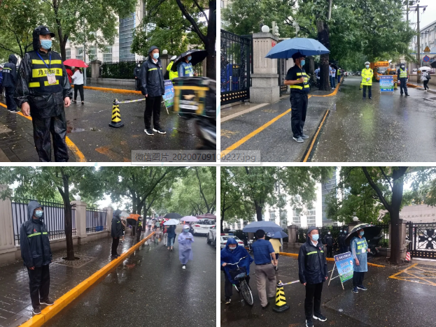 高考保障第三天,国诚物业处月坛北区街巷物业项目部除日常做好考场周边环境治理保障工作外,雨天坚守岗位,安排足够人员组织安保执勤,时刻为考生营造良好的考试环境。