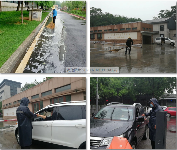 清晨,物业三处中国中医科学院项目部清理积水,门口值守,扎实做好各项防汛防疫工作。