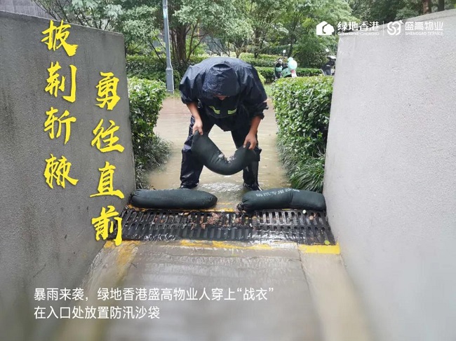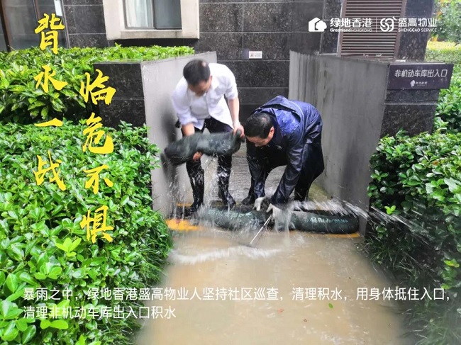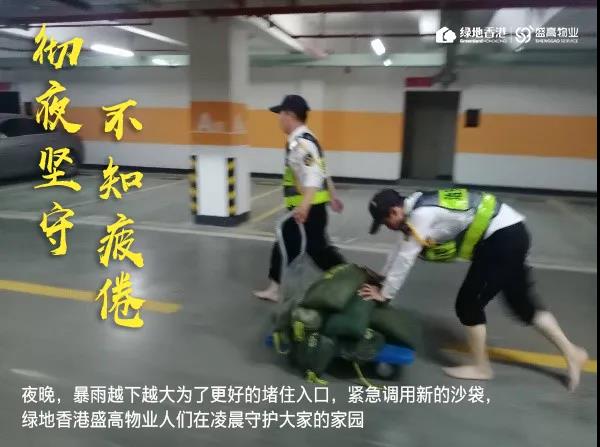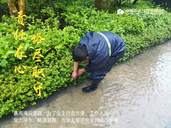 暴雨来袭,有绿地香港盛高物业人守护您的安全,责任在肩,积极奋战,时刻坚守抗洪一线!