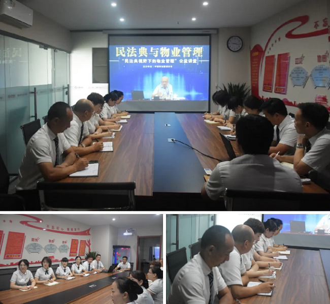 正美物业同步组织总部及各区域公司、项目部全体员工进行学习,跟随陈伟司长的深邃目光和娓娓讲解,一起重温民法典对物业管理生存价值的立法表达,一起探索民法典对物业管理未来发展的法律指引。
