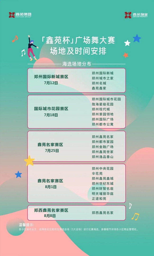 不是郑州的业主也不要着急,鑫苑全国各项目广场舞大赛报名预计八月开启,具体可咨询项目管理处哦