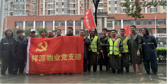 沙袋一袋又一袋的身上扛、积水一盆又一盆的往外舀、居民一家又一家的劝导,祥源物业党支部党员们没有露出丝毫疲惫,更没有丝毫懈怠,即便闷在雨衣内的衣服浑身湿透,头也被雨帽勒得麻木,鞋子里面全是积水,依旧热情高涨,干劲十足。
