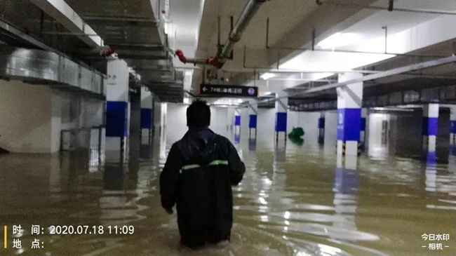 同样是,7月18日6时左右,安徽新亚物业安徽医科大学项目部也接到了紧急求助电话,该大学刚刚建成、尚未交付给物业服务企业管理的“医学教学标本库”的地下车库漫水、且水深达70公分左右。