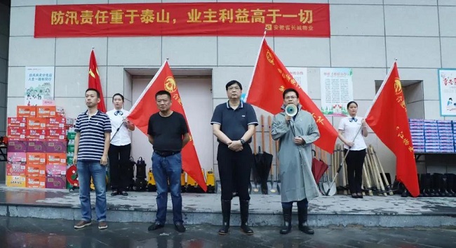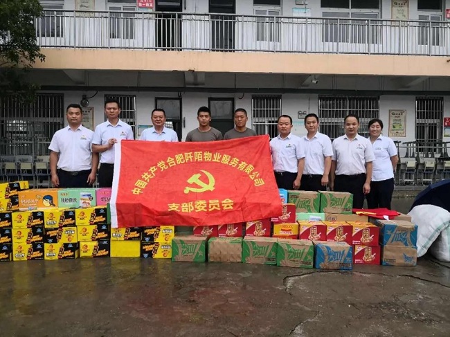 洪水无情,人有情。据程纯洁介绍,除了进行所属项目的防汛保障工作,合肥物企还积极组织力量参与到社会防汛抗洪的工作之中。比如顺昌物业党支部积极响应党中央号召,组织了以纪检委员、副总经理王立群为组长的抗洪赈灾小组,支部党员和入党积极分子们带着紧急采购的200床空调被和生活用品等爱心物资,奔赴芜湖市鸠江区白茆镇抗洪赈灾。