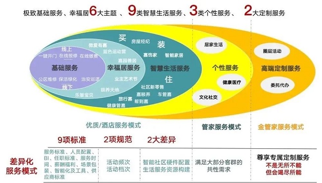 个性定制化服务体系与智慧平台应用相结合,深入客户的边际生活服务需求的关注,同时将人性化应用及科技应用其中。