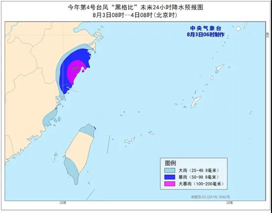 受台风“黑格比”影响,8月3日8时至4日8时,浙江东南部、福建东北部、台湾岛北部和西南部等地的部分地区有大到暴雨,其中浙江东南部局地大暴雨(100-200毫米)。