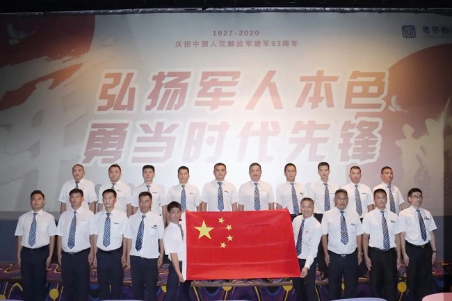 军人之所以被尊重,不是因为这两个字,而是因为他们肩上的责任。脱去军装,职责犹在,仍然受尊重。为庆祝建军93周年,进一步传承和弘扬中国人民解放军团结、积极、向上的精神面貌,公司组织在职退役军人前往广州市青年文化宫开展以“弘扬军人本色,勇当时代先锋”为主题的庆祝活动。粤华物业党总支书记、总经理曲以江,党总支副书记、工会主席连允林,副总经理窦大明出席活动。