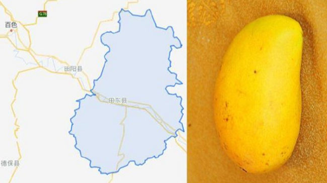 有趣的是,百色的田东县在地图上看,其形状就像一个芒果,可谓是名副其实的“芒果之乡”了。