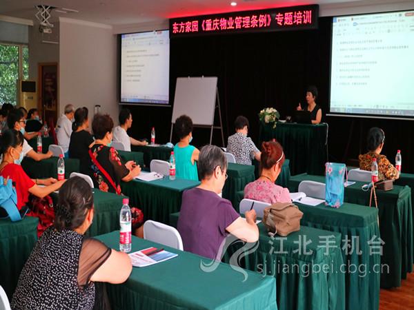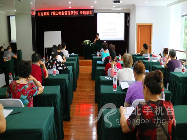 8月5日上午,在华新街街道东方家园小区内,重庆智博物业管理研究院为辖区业主委员会委员、网格员、楼栋长、党员、居民代表共计40余人带来了一堂生动形象的《重庆物业管理条例》专题培训课。