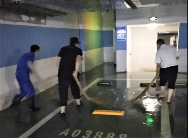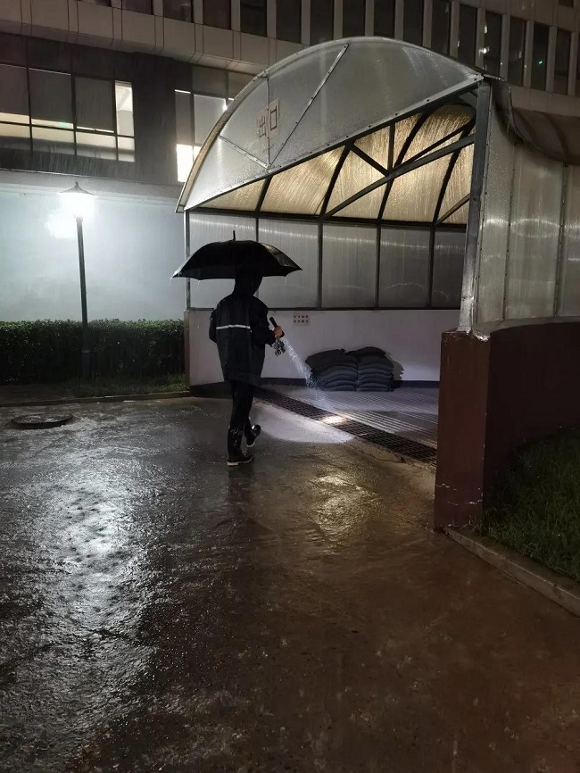 在天津,暴雨依然来势汹汹。天津分公司的一线物业人们在深夜中迅速出动,24小时在线坚守。地库积水,他们连夜清理打扫,清晨来临,他们又抓紧对设备设施检修维护,在这场最强暴雨中,他们一直在用心为社区家人守护!