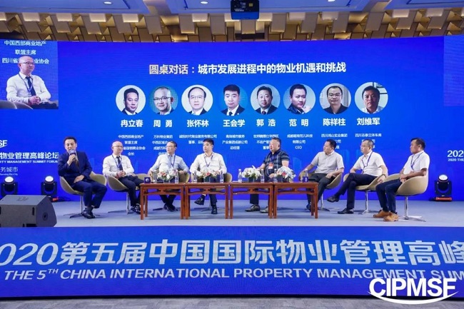 圆桌对话中,中国西部商业地产联盟主席、四川省连锁商业协会会长冉立春,万科物业集团中西区域合伙人、成都万科物业总经理周勇,诚悦时代物业服务有限公司董事、总经理张怀林,高地城市服务产业集团成都公司总经理王会学,世邦魏理仕华西区不动产管理部董事郭浩,成都超有范儿科技有限公司CEO范明,四川鸿山实业集团有限公司总经理陈祥柱,四川志泰立体车库有限公司执行董事刘维军等嘉宾就“城市发展进程中的物业机遇和挑战”主题展开了对话讨论。