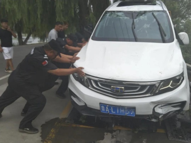 2020年8月5日上午,白云湖景区内发生危险一幕:一家三口开车来景区游玩,停车时因操作不当,致使车辆冲过防护路基,不慎将车开入湖中。