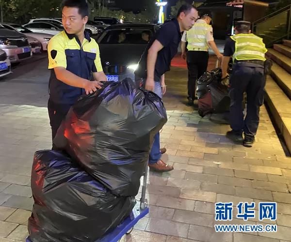 万科物业人员正在协助商家转移。新华网发(受访单位供图)