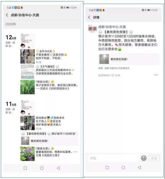 物业人时刻关注天气,及时发布降雨防护温馨提示,提醒业主做好室内及室外防御准备。