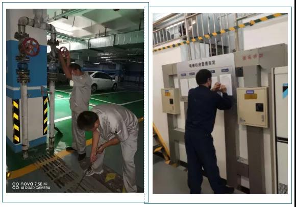物业人进行楼宇风险排查及设施设备检查等工作,从天上到地下,不放过任何一个安全细节,一旦遇到有安全隐患的地方,拿上工具,赶往现场,穿梭在园区内每个角落。