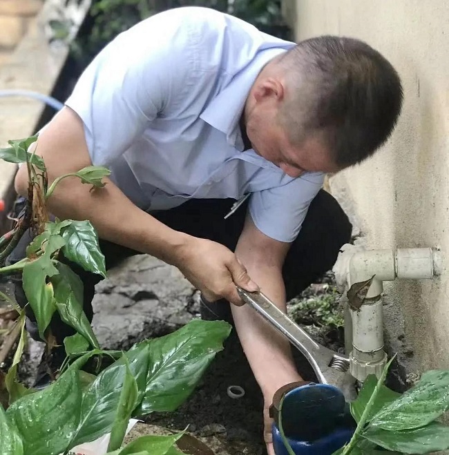 金科物业人员正在进行设备安全检查。新华网发(受访单位供图)