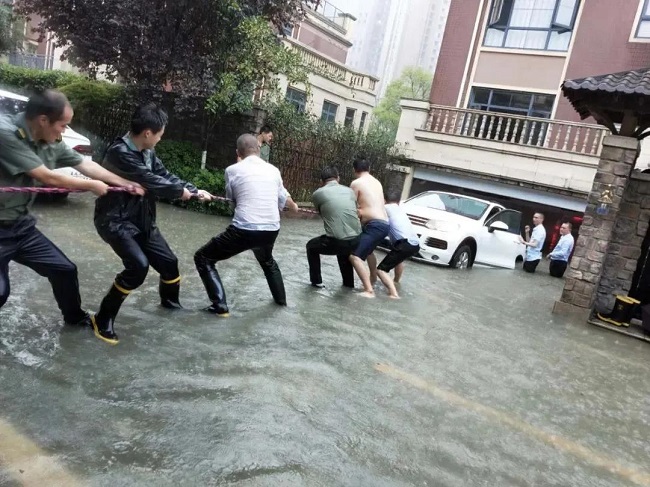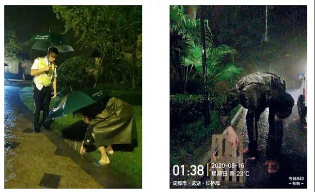 818日下午2点起,位于重庆南滨路的郦江小区车库已经有洪水进入,龙湖物业门岗、物业、客服中心的工作人员组成近20人的团队兵分三路:一路人给车库断电,防止电设备或线路遇水发生漏电后引发触电事故;另一路人开始联系车主来把车挪到地势较高处,防止车辆受损;还有一路人组成巡逻小组,定时检测并记录车库的洪水倒灌水位,车库拉起警戒线,并把近千斤的沙袋围堵在进水处。不到四个小时的时间,低区车库停放的近50辆车被成功撤离,150袋、近千斤重的防洪沙袋也已运至车库现场。