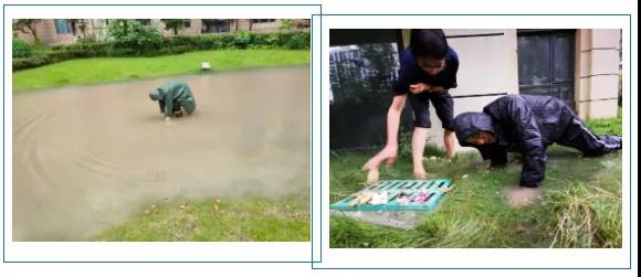 在金科大社区里,守护者发起了守卫家园的抗洪接力,物业秩序队员24小时巡逻,在小区内低洼处围起多条防汛警戒线,给业主更清晰的视觉标识及时安置防汛沙袋、处理园区积水,保证汛期的园区安全。