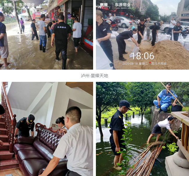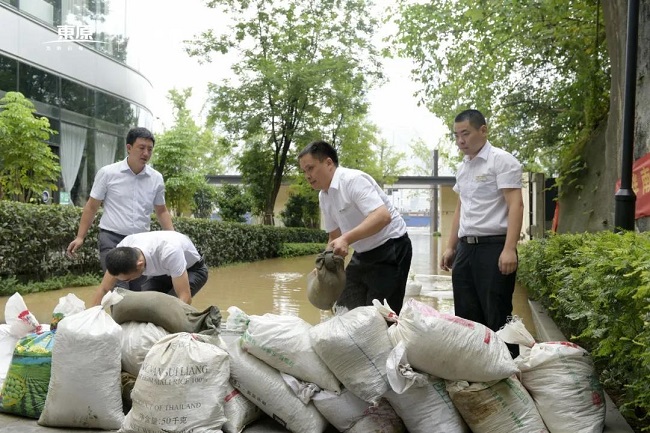 东原物业的抗洪防汛,不仅仅只在这个两个项目,在四川的泸州跨越星耀天地,在北碚的水天花园抗洪抢险也在进行中。