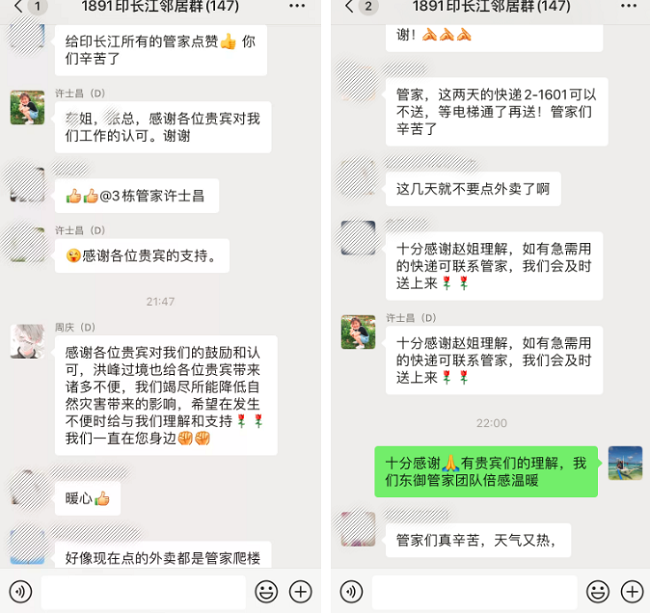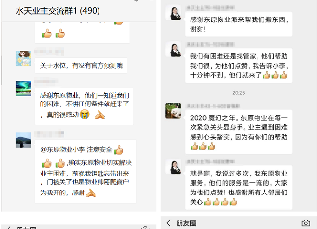 汛情带来威胁都被东原物业快速而坚定的阻挡在围墙之外,快速反应赢得业主认可。