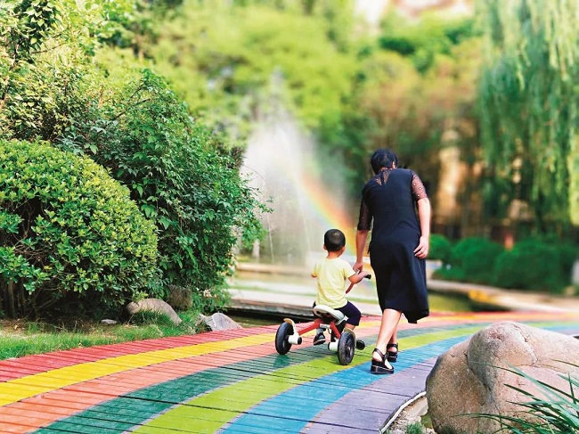 或带着孩子嬉戏在园区