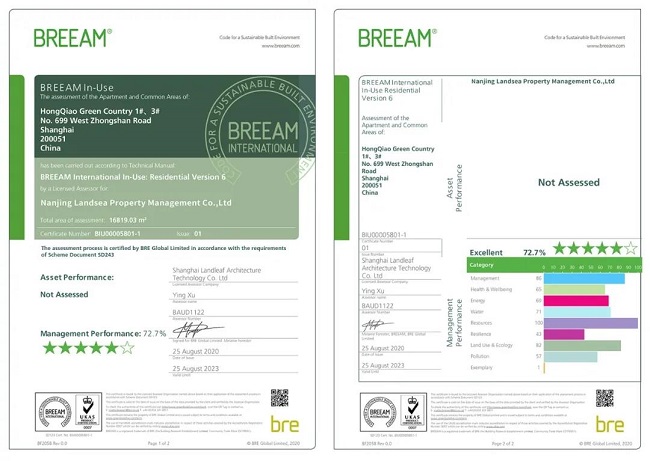 朗诗绿色生活作为国内领先的绿色生活综合服务商,在BREEAM In-Use V6认证标准推出后,敏锐捕捉到该评估体系对改善社区绿色运营的巨大价值,因此率先推动上海朗诗虹桥绿郡参加认证评估,成为全球首个通过BREEAM In-Use V6认证的住宅项目。