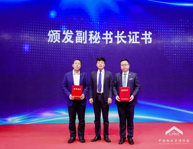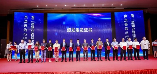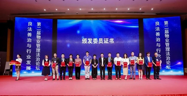 中国物协法工委顾问、郑州市物业管理协会会长程建颖,中国物协副会长、中国物协法工委副主任林常青为中国物协法工委新增补委员颁发证书