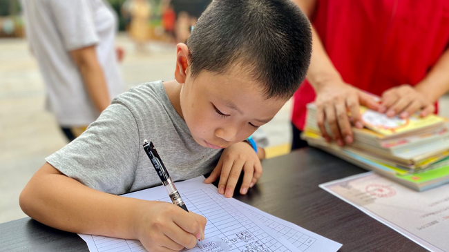 在捐赠活动现场,汉京山的孩子们认认真真地在捐书记录表上填写着自己的名字以及捐书目录、数量,并领取自己的开学礼包。一位把自己暑假刚刚看完的课外书捐赠出去的四年级小学生,在主持人问及舍不舍得把书捐给山区小朋友的时候回答,“有点舍不得,但是还是觉得捐出去比放在家里好,希望山区小朋友能跟我一样,喜欢这些书"