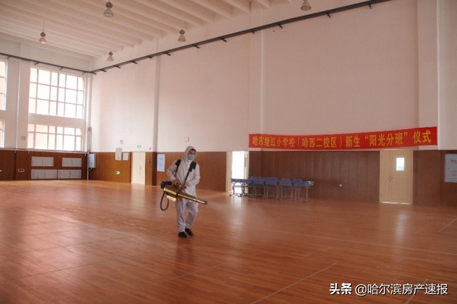 8月29日上午8点,首批欣汇龙物业8名消杀志愿者,来到继红小学校哈西二校区,有条不紊地对教室、操场、体育馆、食堂等进行地毯式的全面消杀,尤其是走廊、楼梯、操场、地面、墙壁、角落、门框、门把手、桌椅、卫生间、洗漱台以及容易滋生细菌的卫生死角进行了细致彻底的消杀处理。