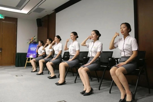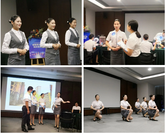 个人赛中客服姑娘们进行了BI展示、指引情景模拟、个人主题演讲、服务创新等演绎,一颦一笑,一言一行,一句问候,一个鞠躬,都展示出服务的温度。团队赛的对客服务场景设计中,她们眉宇间流露出的热情,举手投足时展现的服务标准,无不表达她们对物业服务的态度及用心。