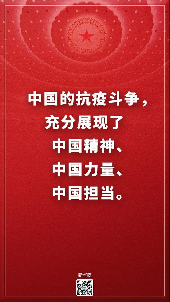 在这场同严重疫情的殊死较量中,中国人民和中华民族以敢于斗争、敢于胜利的大无畏气概,铸就了生命至上、举国同心、舍生忘死、尊重科学、命运与共的伟大抗疫精神。