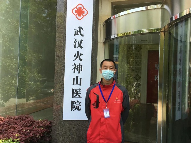 志愿者高勇在火神山医院。