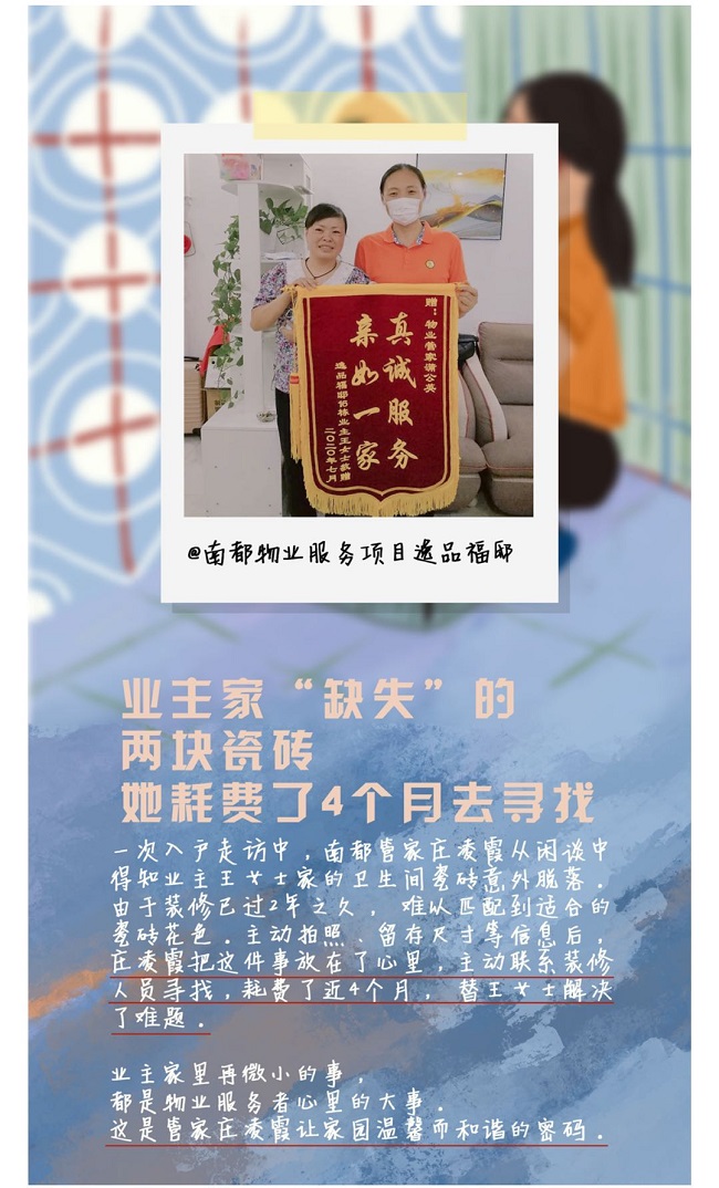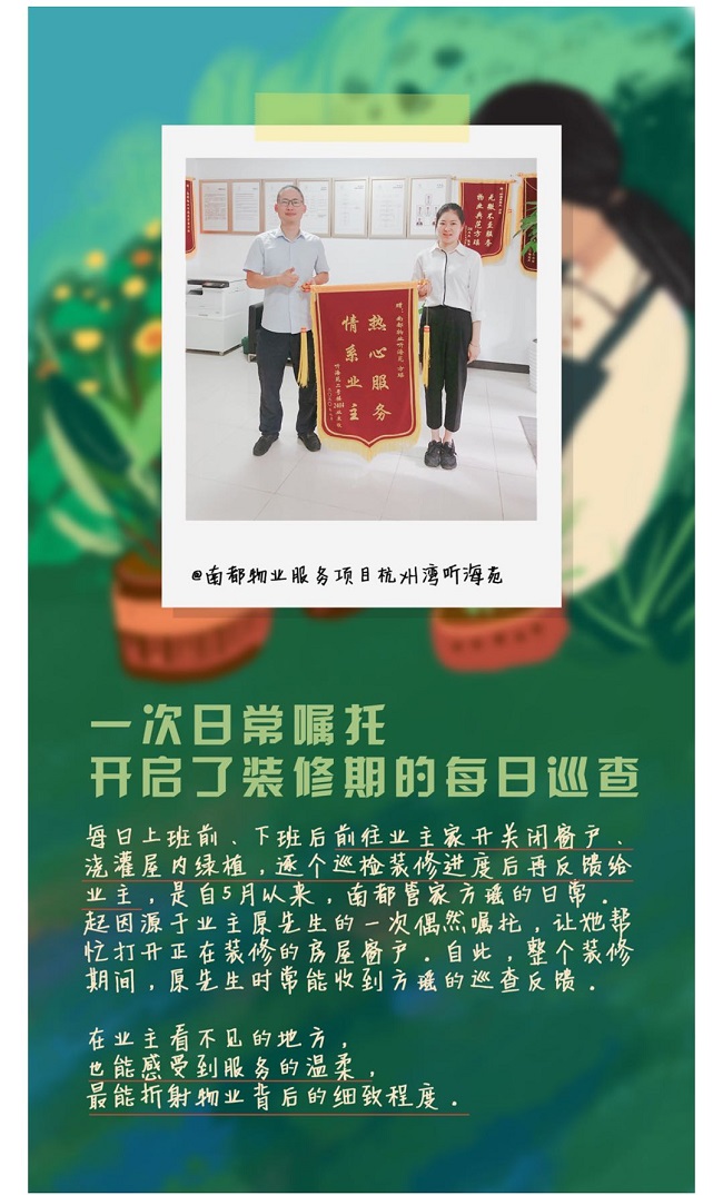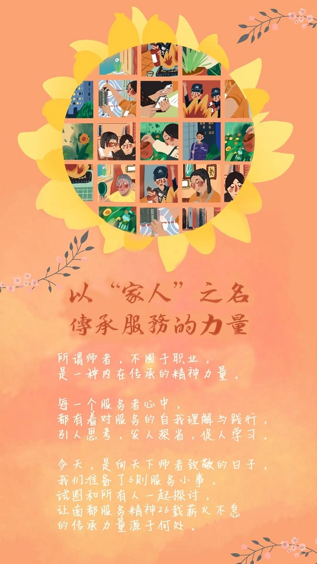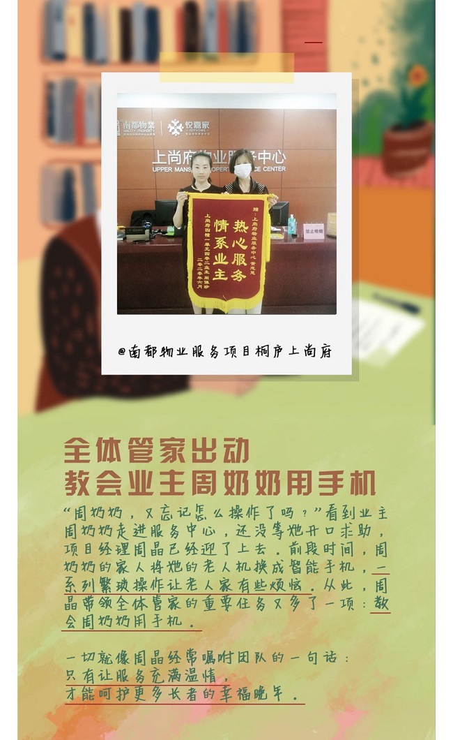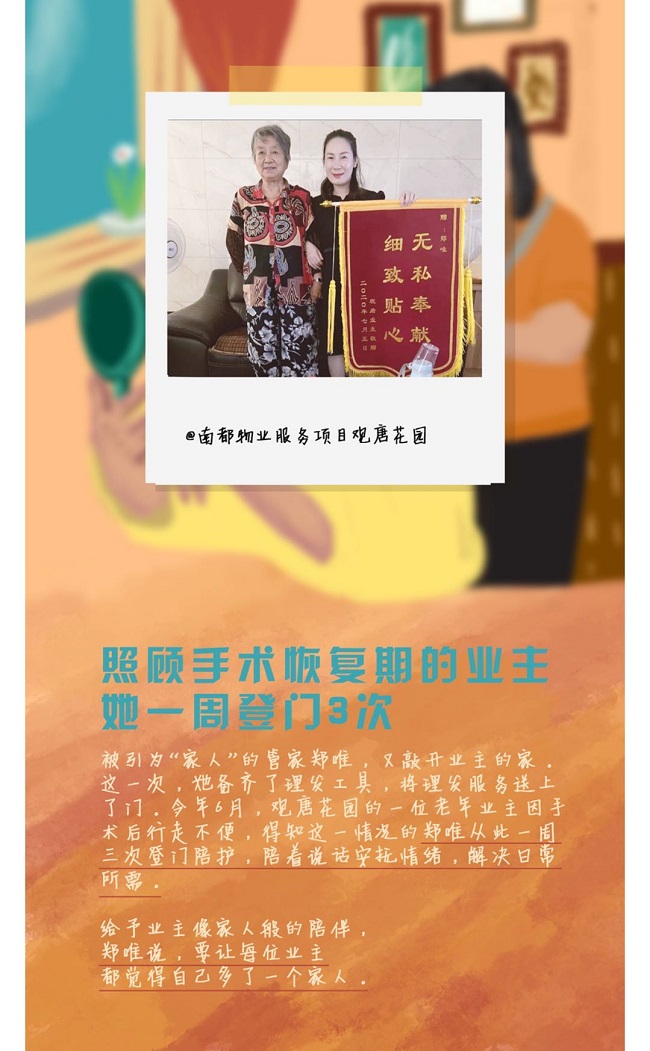 从基础服务到智慧服务的转型升级过程中,我们不断融入时代、迎势创新,但始终不曾改变的是坚守品质服务的内核,和“传递幸福传递爱”的服务宗旨,在点滴服务中传承不变匠心,致敬美好生活。