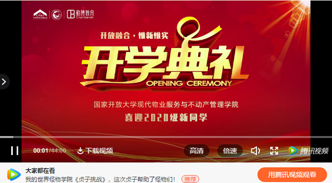 10月10日,国家开放大学现代物业服务与不动产管理学院(以下简称“行业学院”)通过线上直播的方式举办了隆重的2020年秋季开学典礼,喜迎首批莘莘学子。