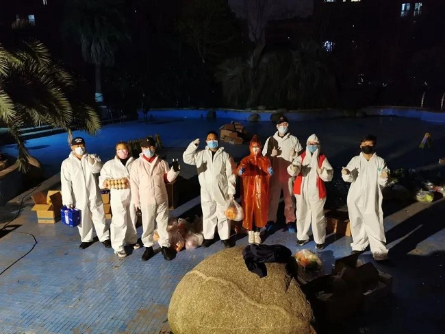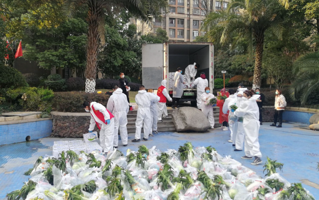 近7万份免费爱心蔬菜、180个团购群、分发近24万份团购物资、每天搬运三四千斤物资、背着近50斤的消毒器喷洒20吨的消毒稀释液……他们身上厚重的防护服湿了又干、干了又湿。