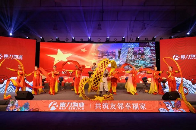 本次活动的重头戏是全国业主联欢晚会。晚会节目均由来自全国各地的160多位富力业主参演,共分为三个篇章:赢新冠之战,颂抗疫先锋;成青春之梦,创希望绿田;逐美好生活,舞盛世中华。从诗朗诵到快板舞蹈以及大合唱,多种形式表达对于疫情中默默奉献的人的赞美。疫情虽然带来苦难,生活还是充满希望,一支《希望》舞动英姿,最后一场热血阳刚的中华武术表演将晚会气氛推向高潮,现场掌声不断。战胜疫情,重迎美好生活。从大气恢弘的朝鲜民族舞蹈到点燃现场的打击乐《爱我中华》,精彩节目一个接一个。