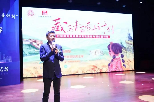 中国社区扶贫联盟联席主席朱旭东介绍“藏区青苗牵手计划”