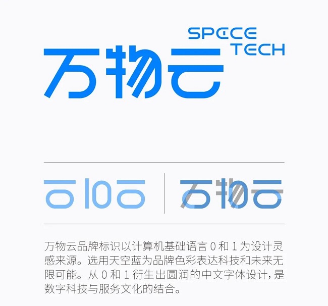 万物云品牌标识,源自0与1的数字灵感与中文圆润字体的文化结合。